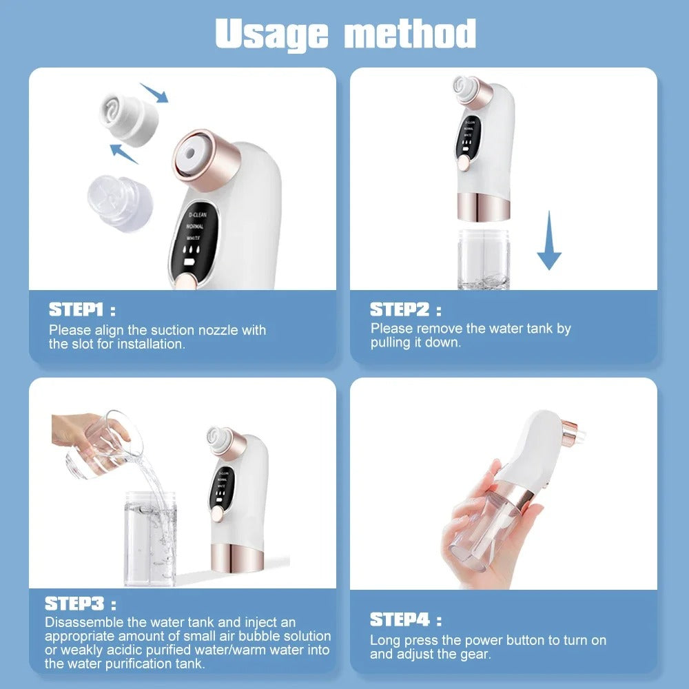 1.Adopting innovative and upgraded vacuum negative pressure water circulation, the adsorption force reaches the skin directly, easily sucking out blackheads and acne, improving problems such as enlarged pores and clogged pores.